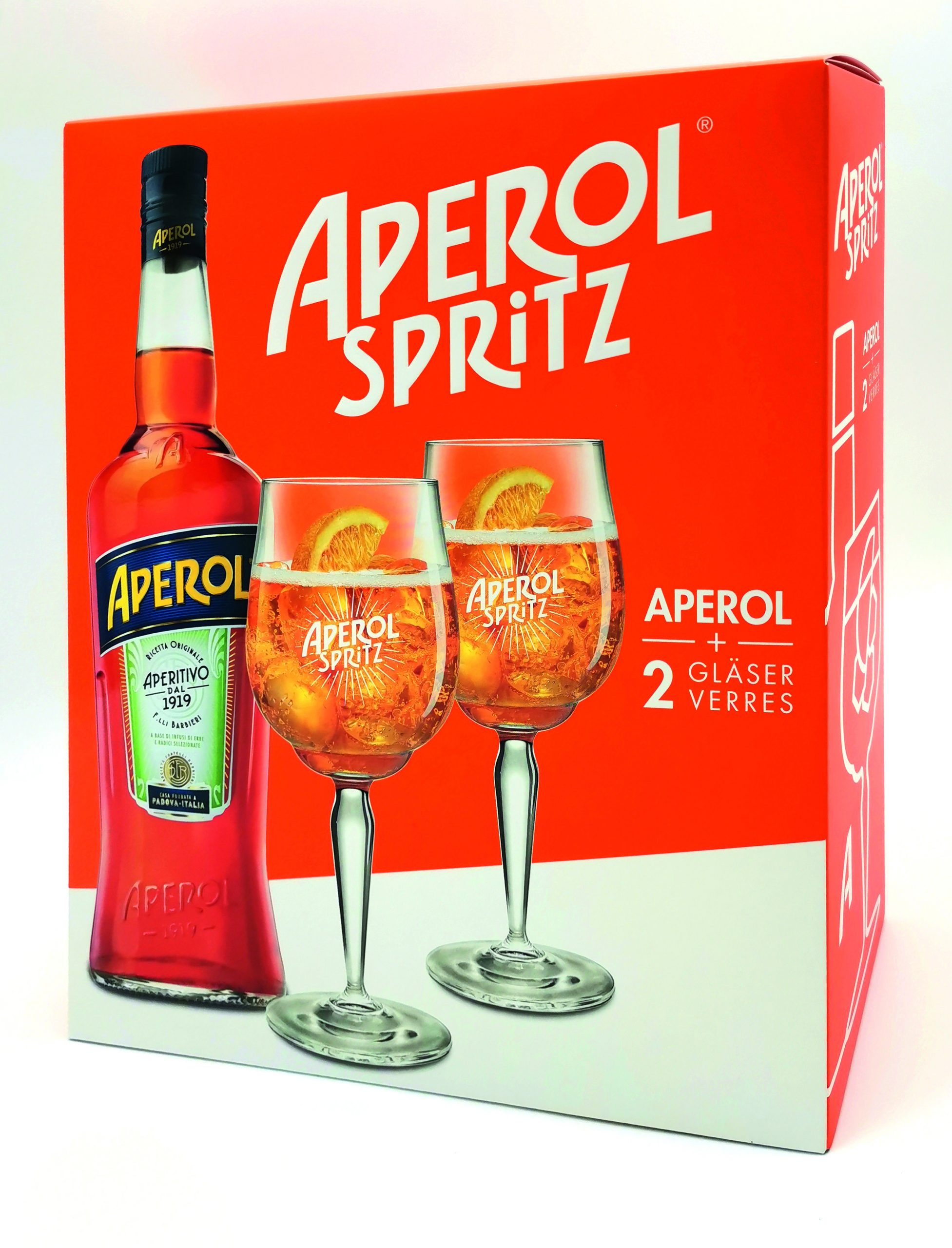 Koši oranžas krāsas APEROL SPRITZ kārba satur komplektu, lai radītu svētku prieku un jautru noskaņojumu. Kārbā ievietotas 2 izsmalcinātas formas glāzes un pudele APEROL SPRITZ kokteiļu pagatavošanai. Kārba ražota no FSC sertificētā kartona Crownboard Prestige, kas starp citiem kartonu veidiem izceļas ar kvalitatīvu, baltu virsmu, stingru struktūru un izturību, kā arī ar relatīvi vieglāku grammāžu. Kārbas konstrukciju papildina 2 kartona un 2 gofrētā kartona ieliktņi. Dizaina akcents: 2 APEROL SPRITZ glāzes un dzēriena pudele, kas izcelti ar reljefu un UV spīdīgas lakas elementiem, kopumā radot īpaši reālistisku glāžu un pudeles attēlu. Lielākam kontrastam kārbas fonam ir pielietota matētā satīna laka, kas veiksmīgi izceļ ar UV izlakotos dizaina elementus – dzēriena nosaukumu, glāzes un pudeli. Kārbas drošu un ērtu aizvēršanu nodrošina speciālas “atslēdziņas”.